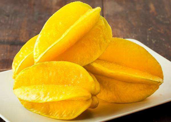 4.清熱利咽 楊桃果實中含有大量的揮發性成分、胡蘿卜素類化合物、糖類、有機酸及維生素B、C等,可消除咽喉炎癥及口腔潰瘍,防治風火牙痛。 食用方法:楊桃外型美觀、獨特,顏色呈翠綠鵝黃色,皮薄,果肉脆滑、鮮嫩且酸甜可口,里面含有充足的水分。除了可以鮮吃外,部分地區的人在吃楊桃時還會用一些“獨特”的方法,比如說海南人吃楊桃習慣粘上少許的鹽和辣椒,這樣吃起來別有一番風味,會越吃越上癮;三亞人則常用酸楊桃配鮮魚同煮,其湯既甜中帶酸,又可以去除腥味。楊桃果皮呈蠟質,光滑鮮艷,爽甜多汁。楊桃性涼,含有多種營養成分,并含有大量的揮發性成分,帶有一股清香。在茶余酒后吃幾片楊桃,會感到口爽神怡,另有一番風味。小貼士:將楊桃搗爛敷面,每次敷面10—15分鐘,這樣有助于消除黑斑及面色的黑色素。
