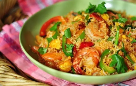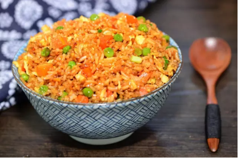 炒飯一定要用大火快速翻炒,不可炒太久,炒至熟就可出鍋,否則會(huì)出現(xiàn)水分越炒越少、飯?jiān)匠丛礁伞L貏e是添加醬汁的炒飯,炒太干就無(wú)法達(dá)到豐盈濕潤(rùn)的口感。而加入雞蛋的炒飯,蛋炒到半熟時(shí)就要加入米飯,炒后的飯上就會(huì)裹有一層金黃色。