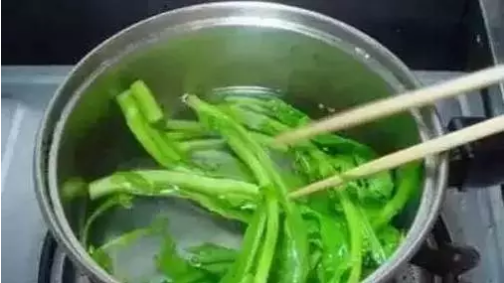 正確做法:焯菜時(shí)應(yīng)盡量讓蔬菜保持完整,用水量要多。此外,焯綠葉菜的時(shí)候,要加點(diǎn)鹽和油,不僅可以防止氧化酶破壞葉綠素,還能保持蔬菜鮮亮的顏色。